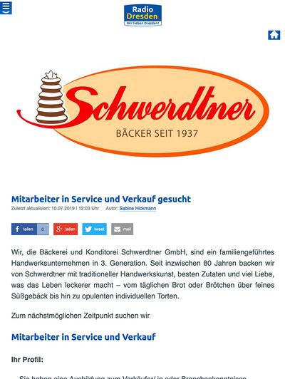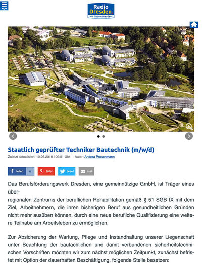 - Anzeige in der Stellenbörse auf der Senderhomepage